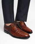TEXTURED TWO-TONE FORMALS From the Harrys Retail New Collection, crafted with exotic inspiration, this vibrant shoe features a crocodile-embossed pattern in brown. Expertly finished for a high-impact look, it ensures you make a memorable impression.